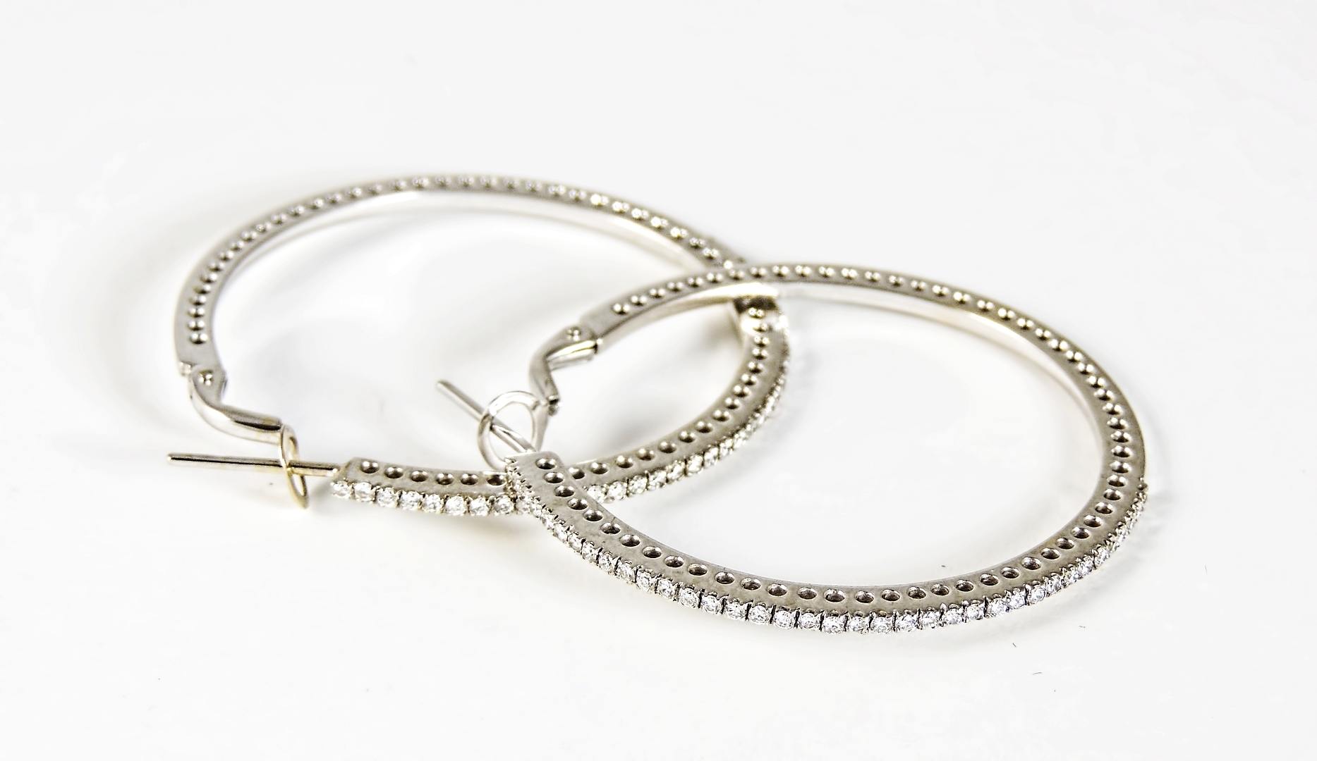 PAIO DI ORECCHINI A CERCHIO IN ORO BIANCO E DIAMANTI - PAIR OF WHITE GOLD AND DIAMONDS HOOP EARRINGS ciascuno impreziosito da piccoli brillanti gr 10,5