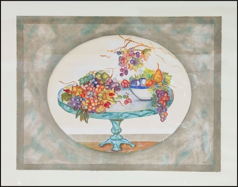 FRAI FELICITA Praga 1909 - Milano 2010 "Vassoio in ovale" Litografia cm 60x45 del 1991. Stampa a 22 colori su carta di puro straccio della cartiera Magnani di Pescia. Firmata sul fronte in basso a destra, tiratura 126/150 a sinistra. Certificato di garanzia a cura della Telemarket.