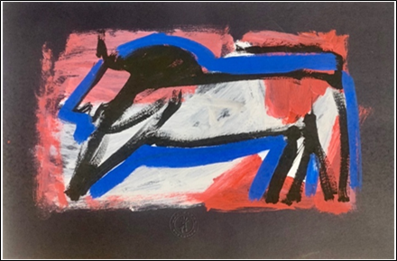 MARRA MAX Paola 1950 "Tori" Tempera su cartoncino nero cm 49,8x34,6. Timbro a cura dell'artista in basso al centro.