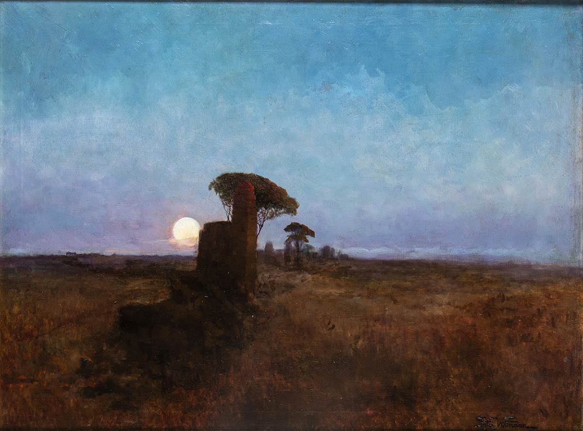 ANONIMO (XIX SECOLO) : Notturno nella campagna romana