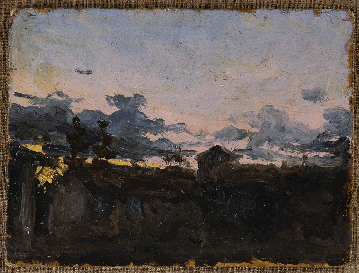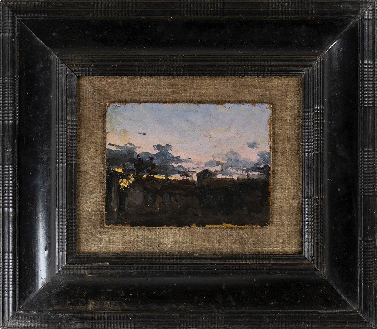 PIETRO FRAGIACOMO (Trieste, 1856 - Venezia, 1922): Paesaggio al tramonto