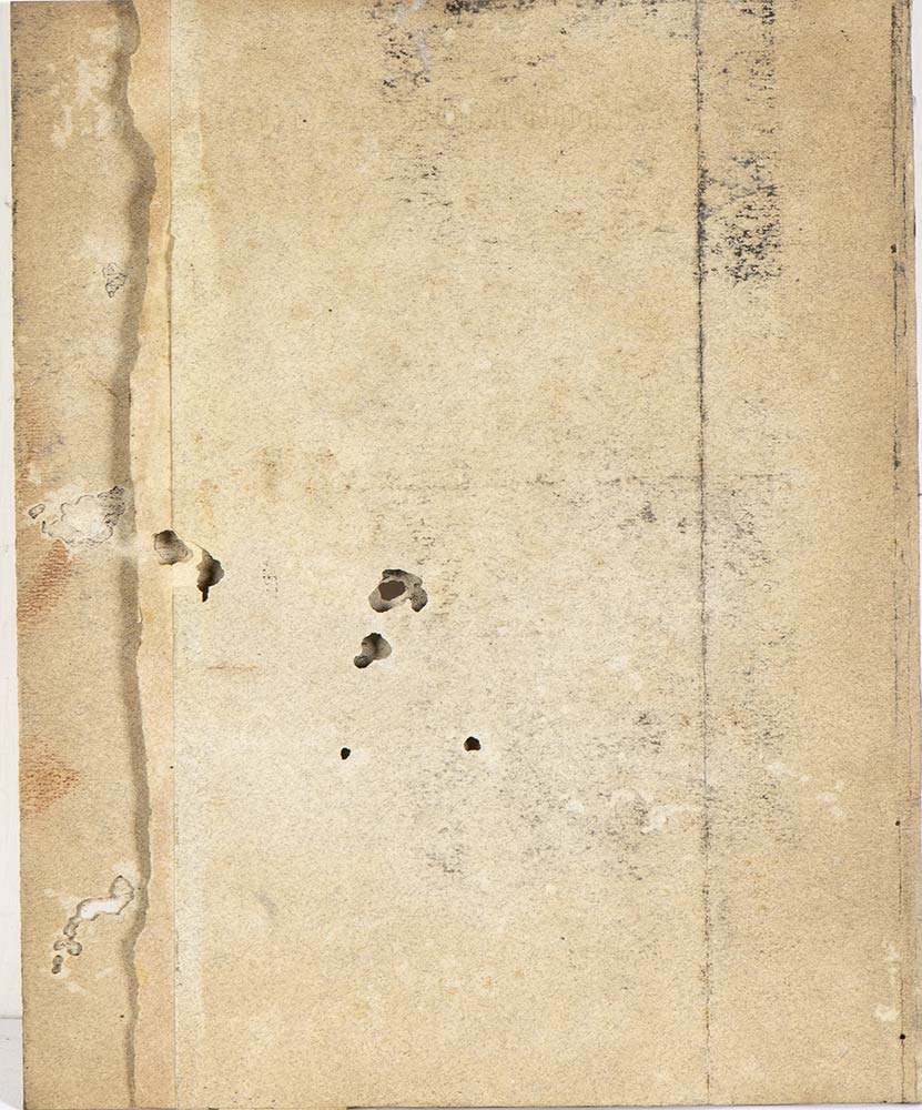 Discrete condizioni, cornice e vetro; presenza di tre fori sulla carta
