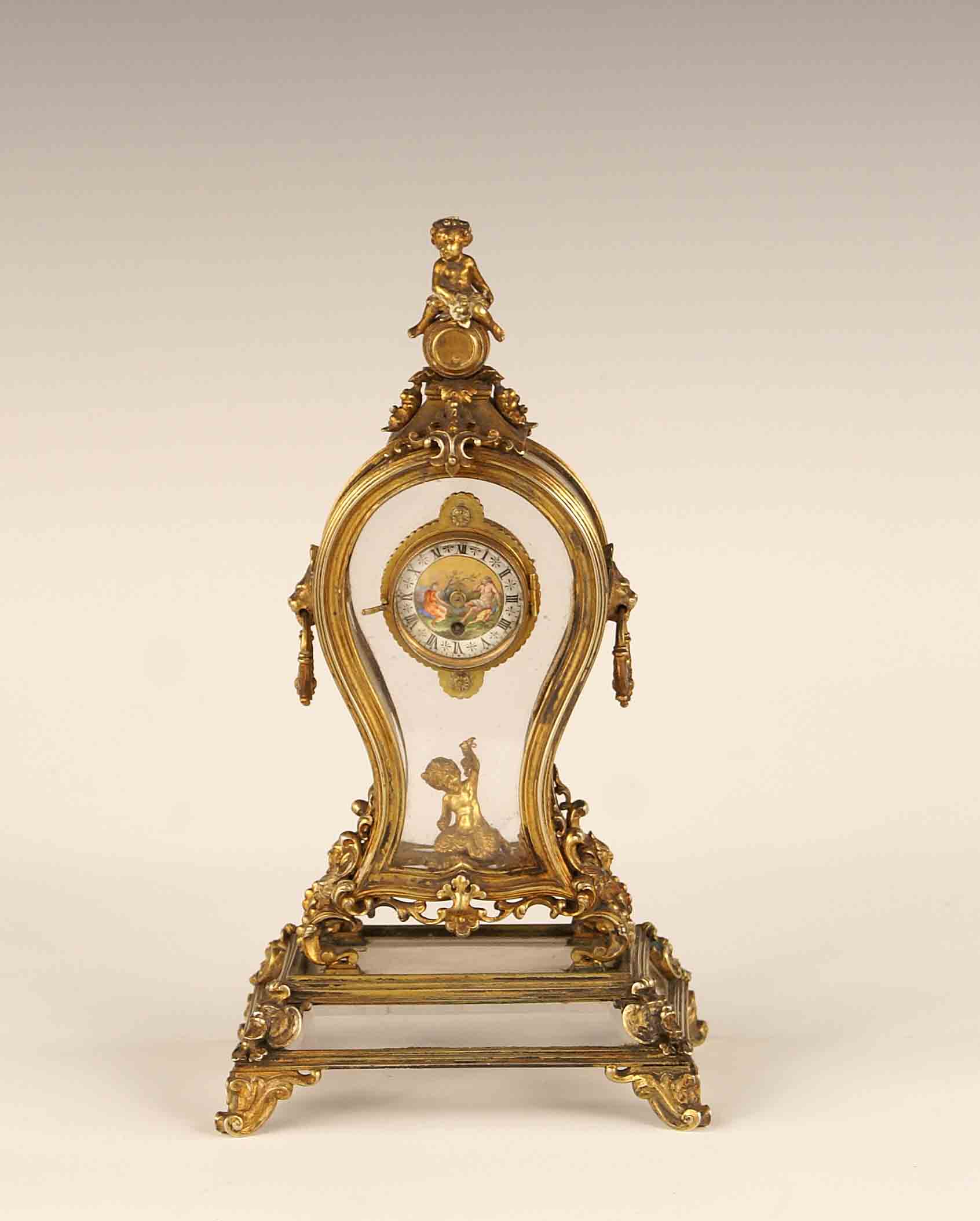 Piccolo orologio da tavolo, quadrante circolare, smalto policromo, montatura...