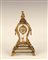 Piccolo orologio da tavolo, quadrante circolare, smalto policromo, montatura in argento dorato, finemente cesellato con sezioni in vetro molato, Francia, XIX secolo h. cm. 20 circa.