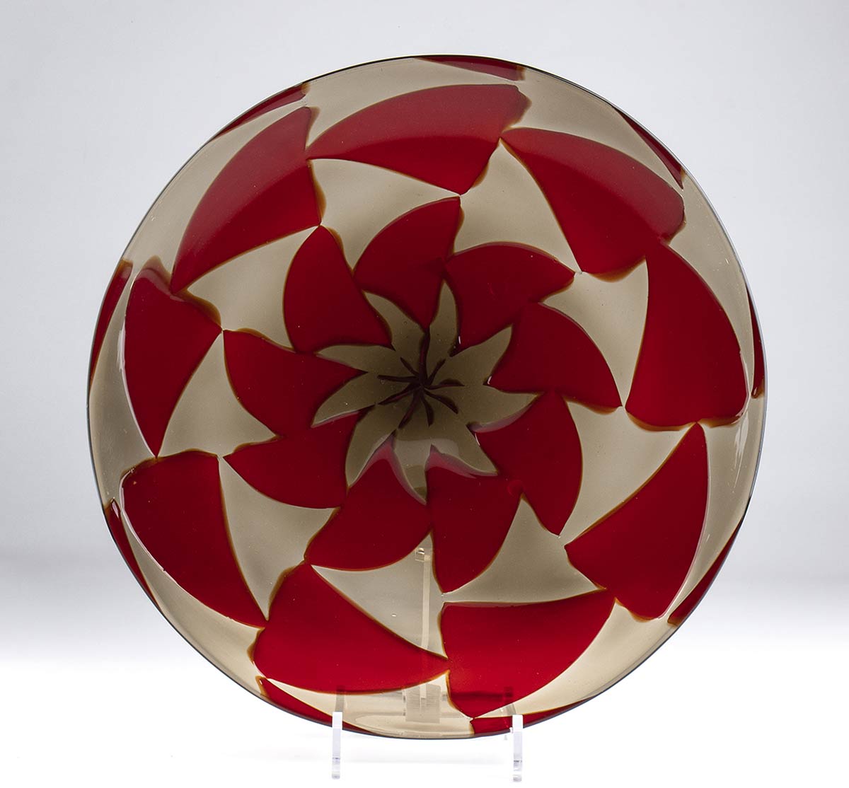 Piatto serie Intarsio in vetro soffiato nei toni del rosso e grigio