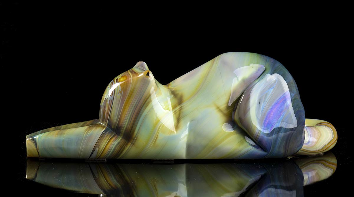 Scultura di gatto in vetro calcedonio