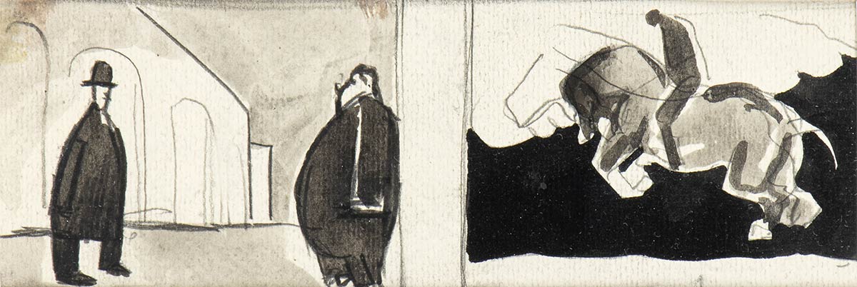 Inchiostro e matita su carta, 5,7 x 16 cm
