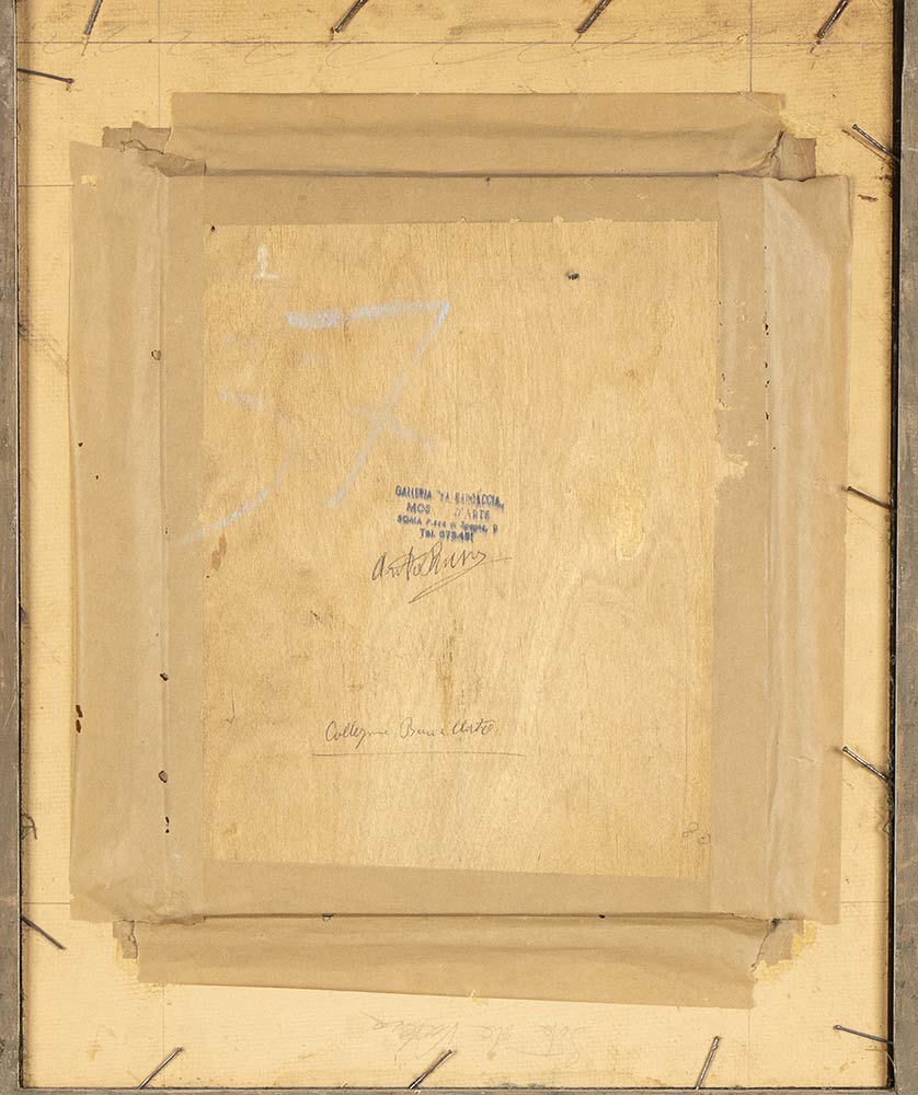 Firmato in basso a destra: Semeghini, al retro timbro della galleria La Barcaccia di Roma e firma di Antonio Russo