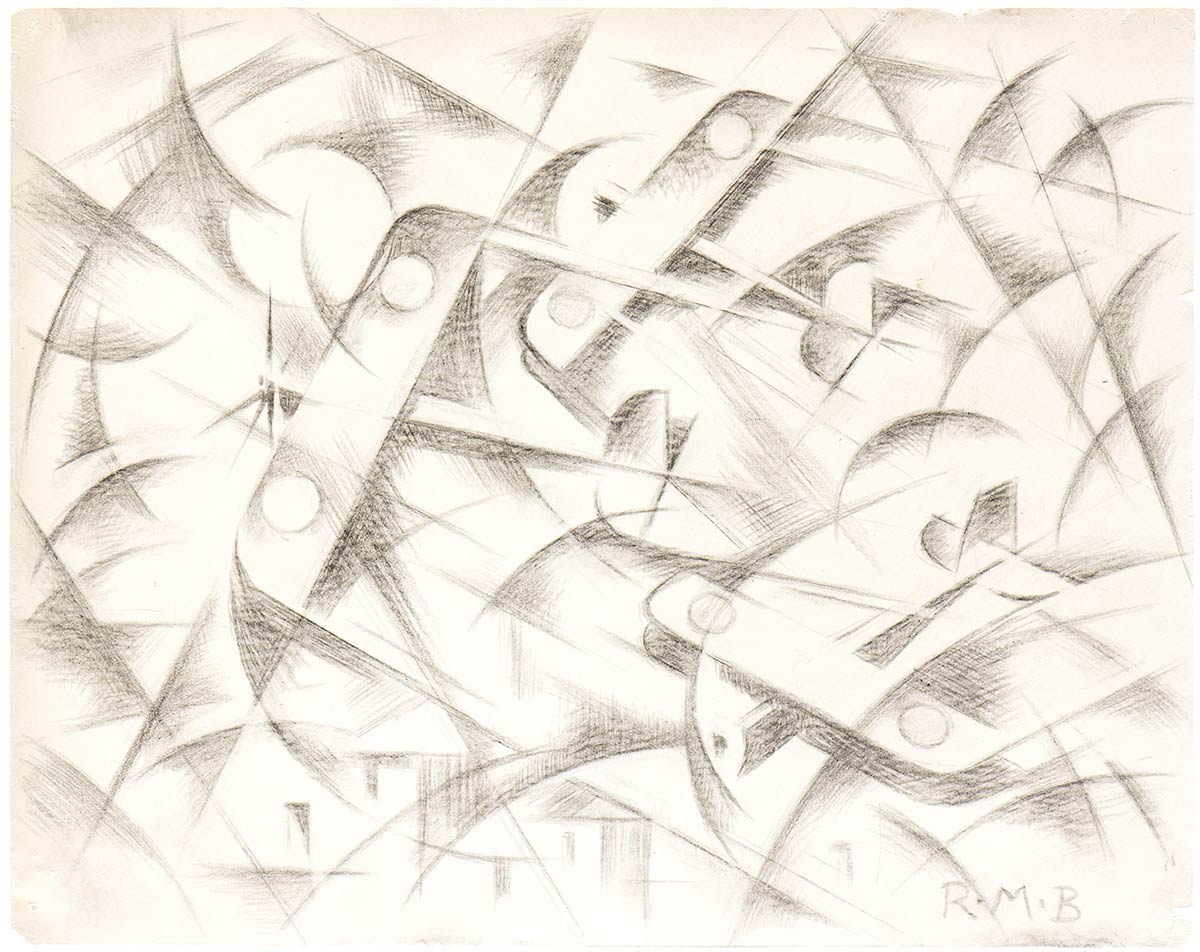 Firmato in basso a destra: R. M. B.; certificato dell'archivio unico per il catalogo delle opere futuriste di Roberto Marcello Baldessarri