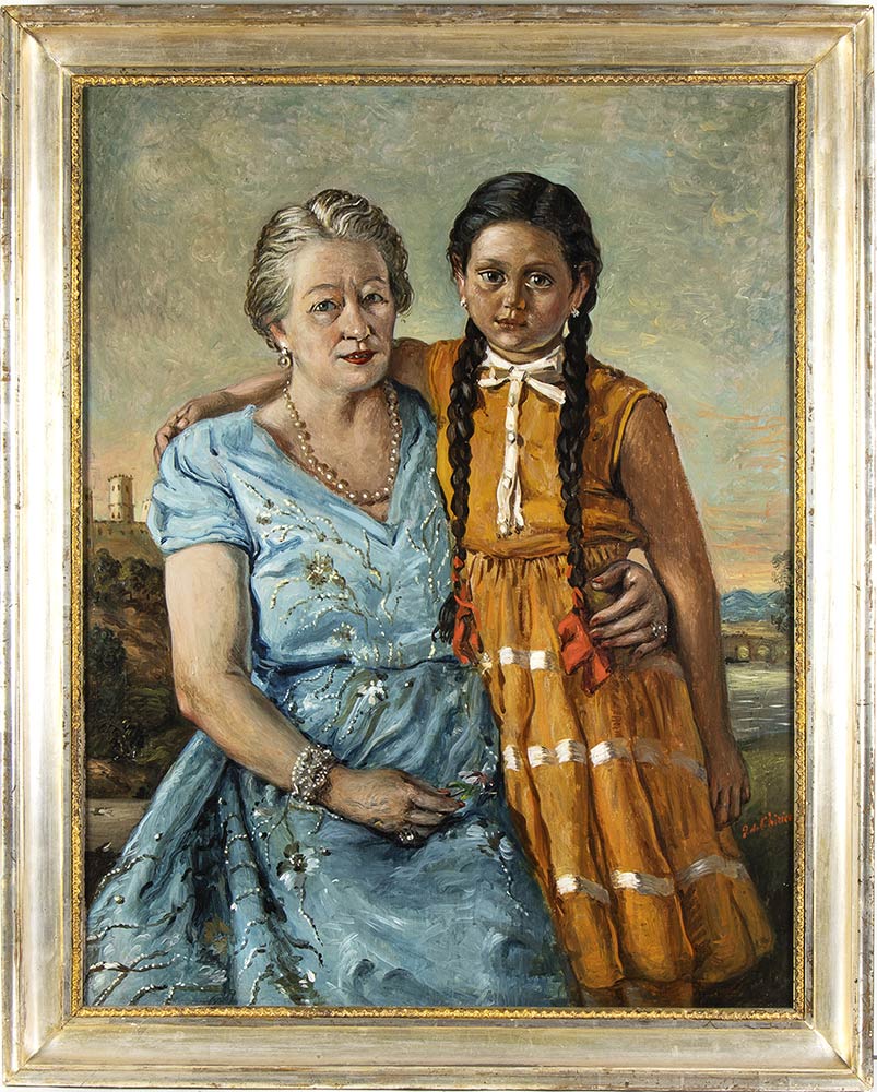 GIORGIO DE CHIRICO (Volo, 1888 - Roma, 1978): Ritratto della N.D. Agusta con la nipote, 1954