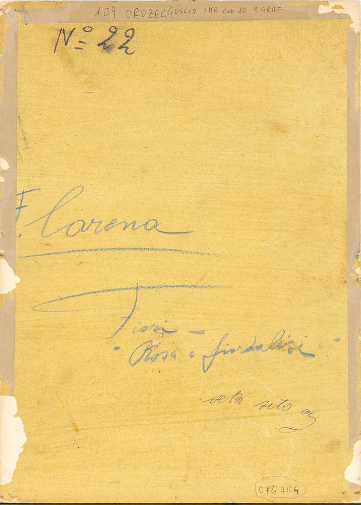 Firmato in basso a destra: Carena; al retro firmato: F. Carena e titolato: Fiori - rosa e fiordalisi