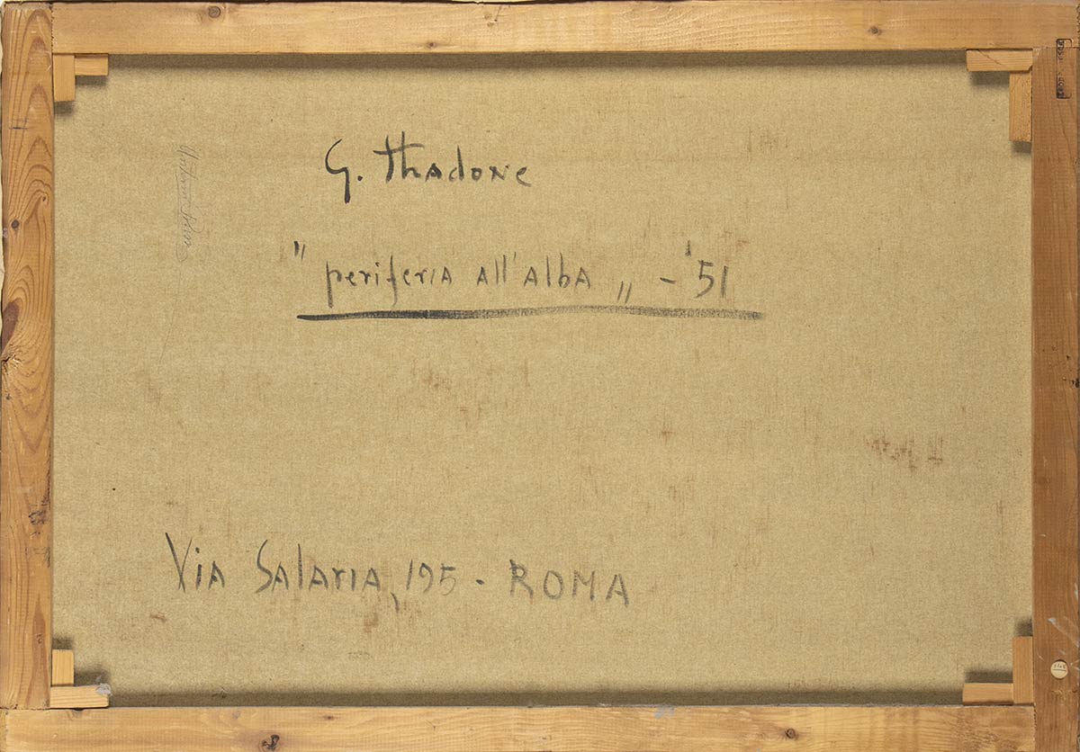Firmato, titolato e datato: G. Stradone, Periferia all'alba, 51