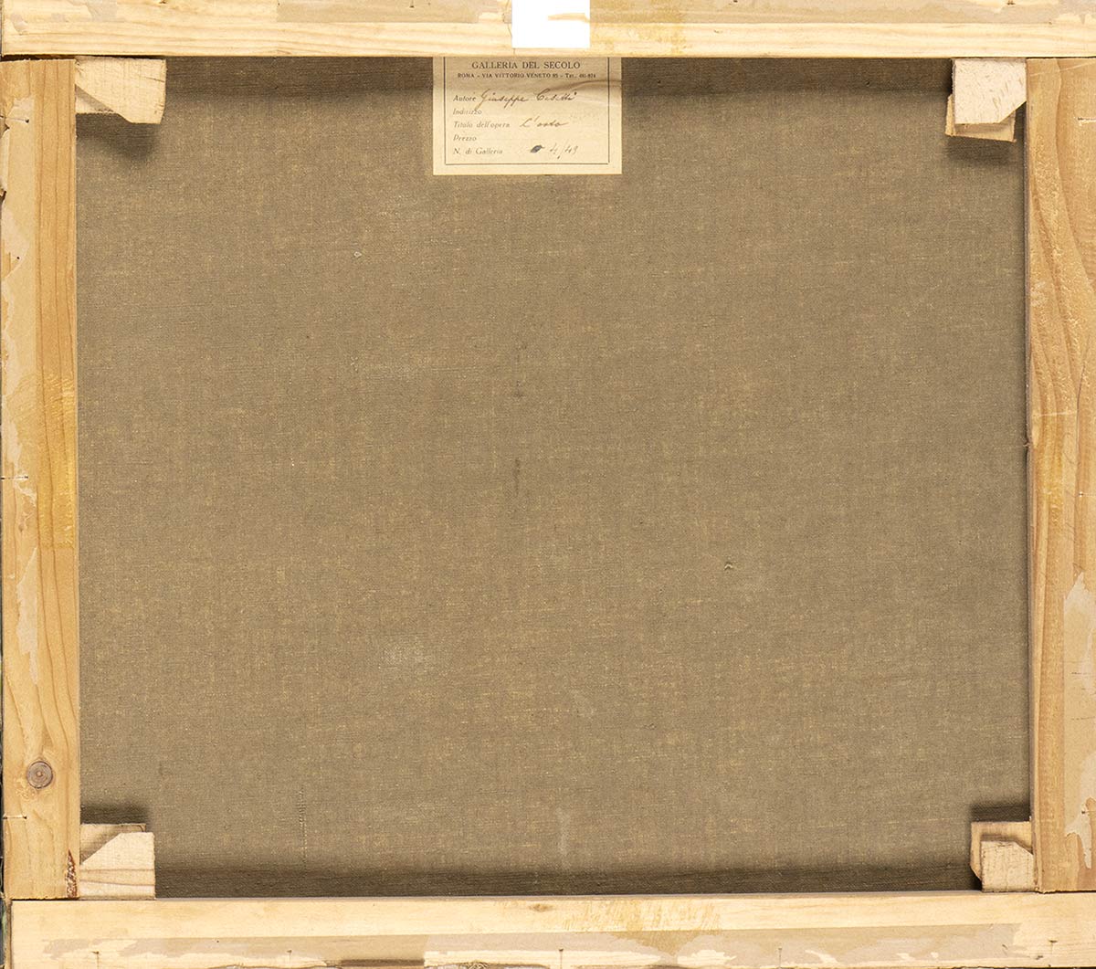 Al retro etichetta della Galleria del Secolo di Roma