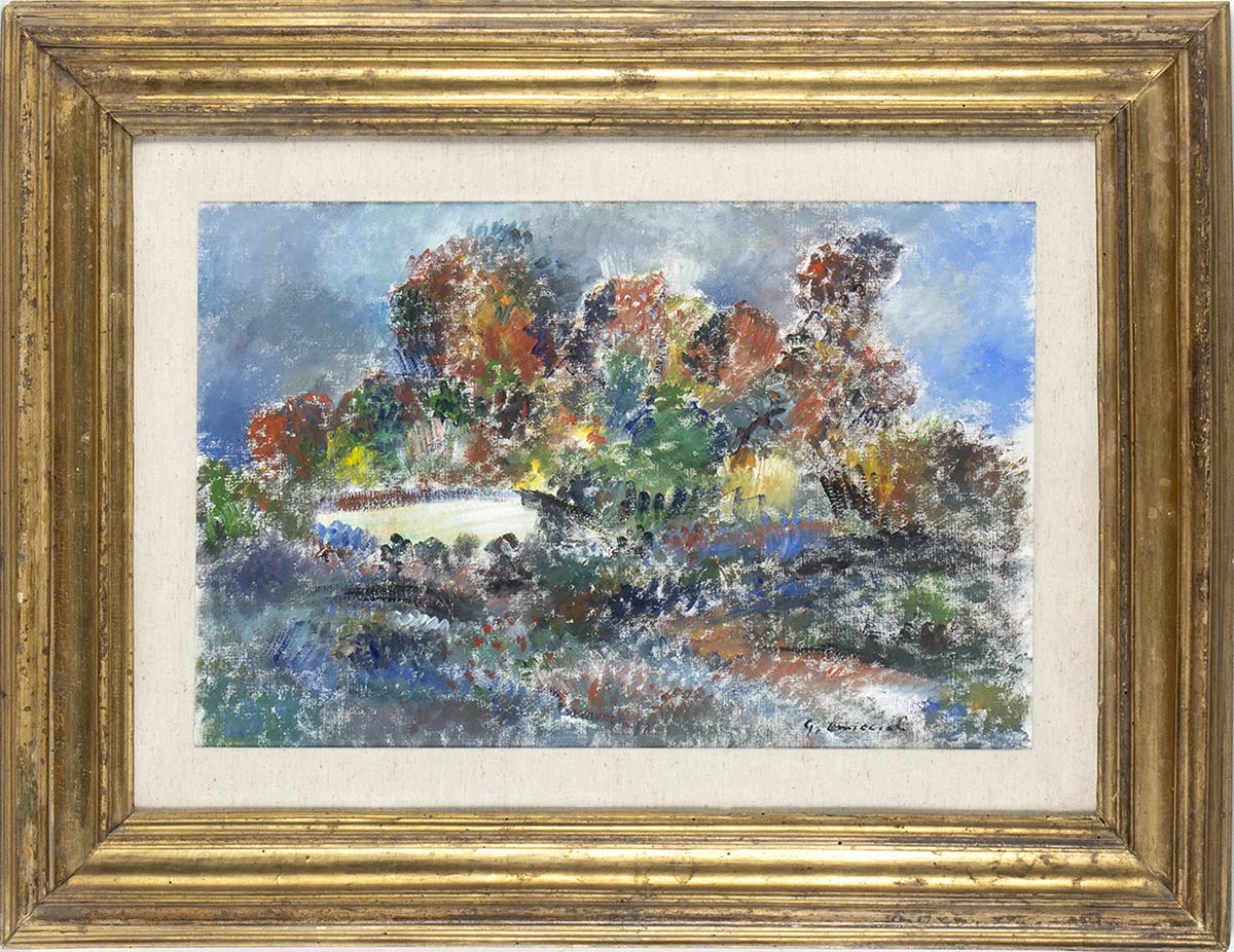 GIOVANNI OMICCIOLI (Roma, 1901-1975): Paesaggio alberato, 1962