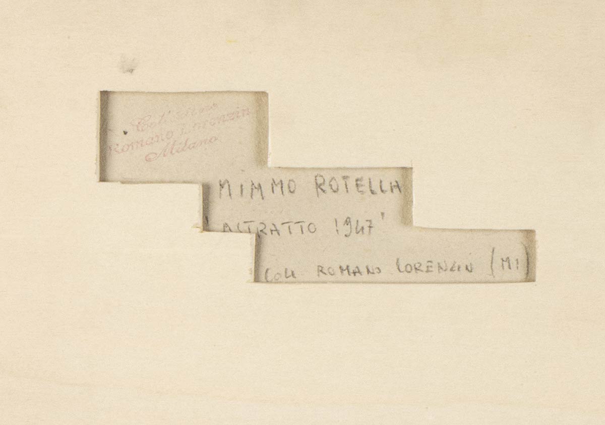 Firmato e datato in basso a sinistra: Rotella, 47; autentica della Fondazione Mimmo Rotella con archivio 2592 DI 947/947