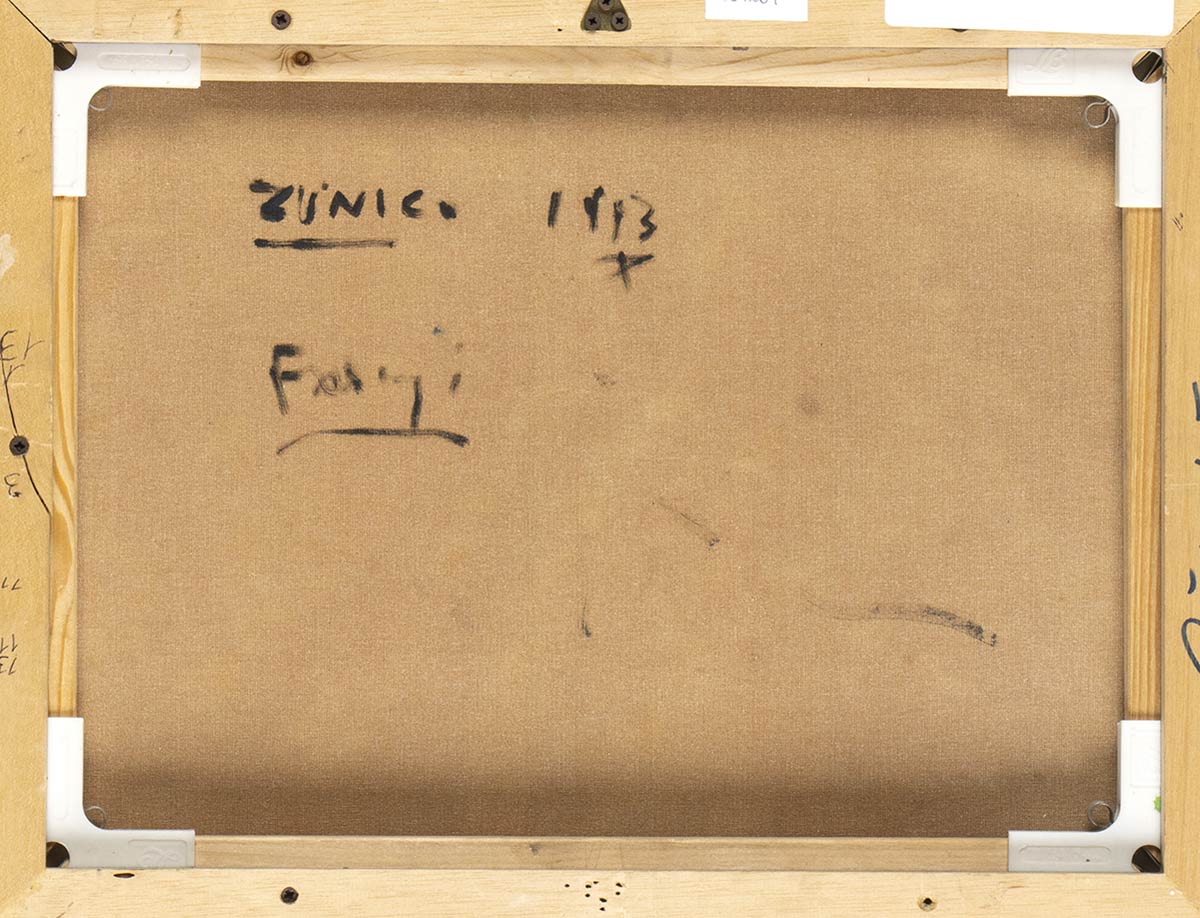 Firmato in basso a destra: Frangi, al retro firmato, titolato e datato: Frangi, Zunico, 1993