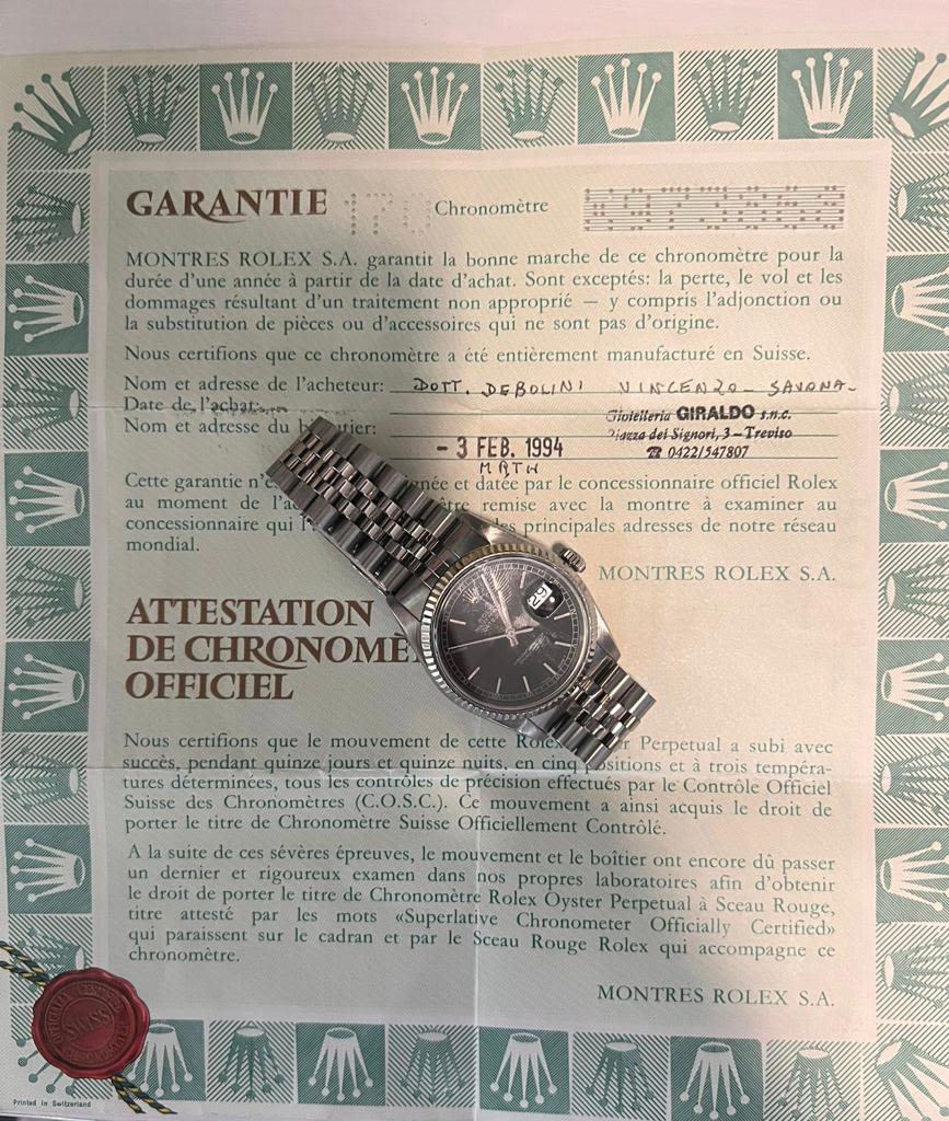 Marca Rolex Modello (Orologio) Datejust 36 Numero di referenza 16234 Carica Automatico Materiale della cassa Acciaio Materiale cinturino Acciaio Condizione Ottimo (di seconda mano, segni di usura assenti o appena visibili) Orologio con scatola di fornitura e garanzia Rolex Carica Automatico Cassa Materiale della cassa Acciaio Diametro 36 mm Impermeabile 10 ATM Materiale lunetta Oro bianco Vetro Vetro zaffiro Quadrante Nero Numeri sul quadrante Senza numeri Cinturino Materiale cinturino Acciaio Colore cinturino Acciaio Chiusura Déployante Materiale chiusura Acciaio Funzioni Data Anno 1993