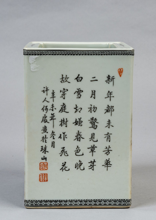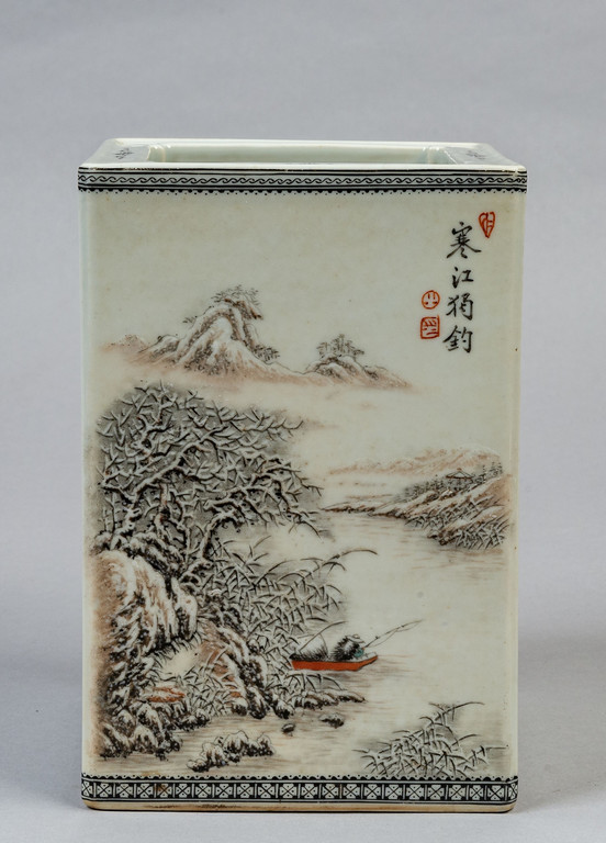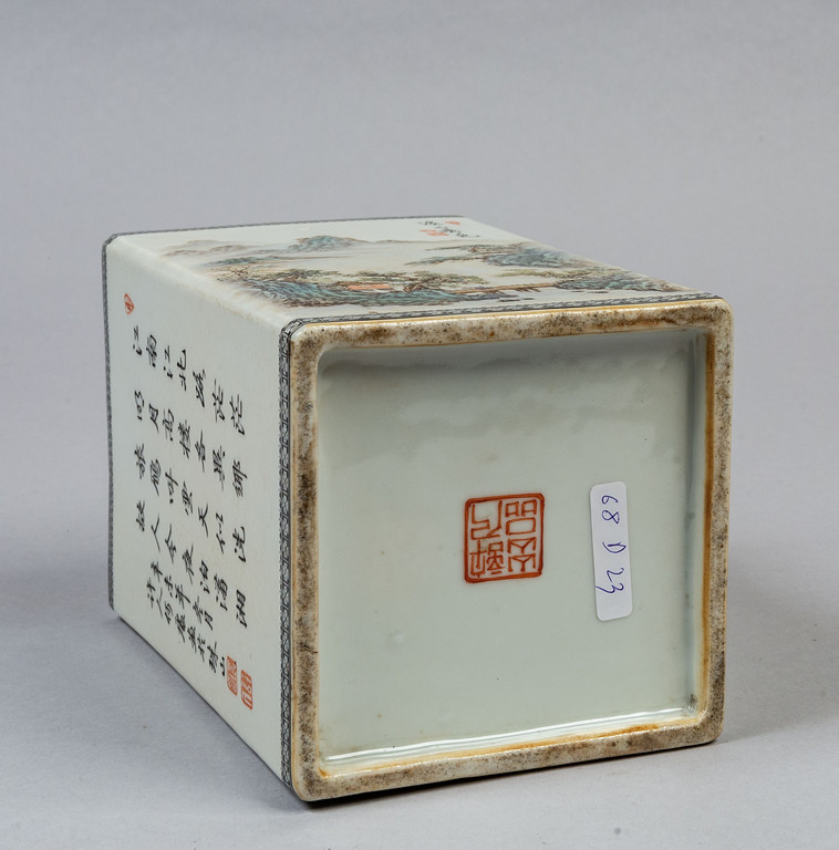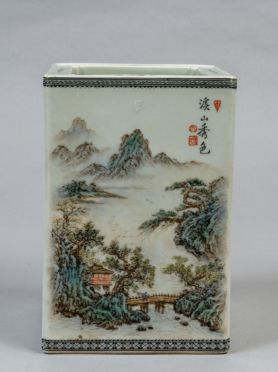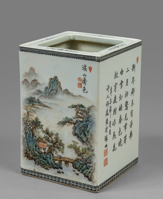 Portapennelli in porcellana decorato in policromia a paesaggi Cina