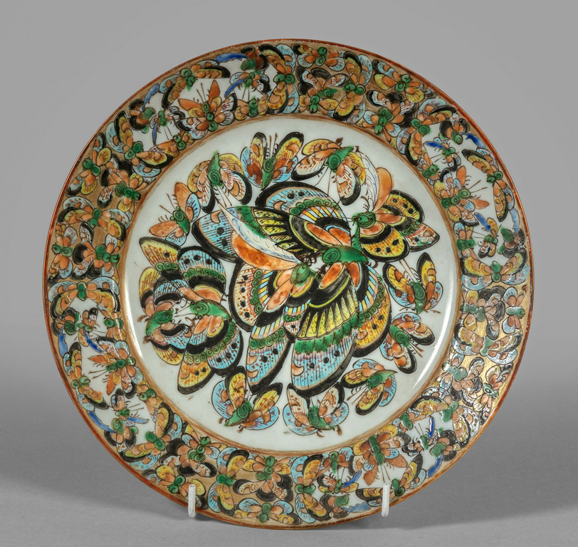 Piatto in porcellana policroma con farfalle Cina sec.XX