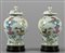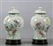 Coppia di potiches in porcellana di Cina decorate in policromia con fiori ed animali su fondo bianco sec.XIX