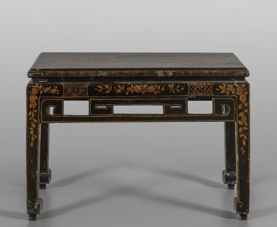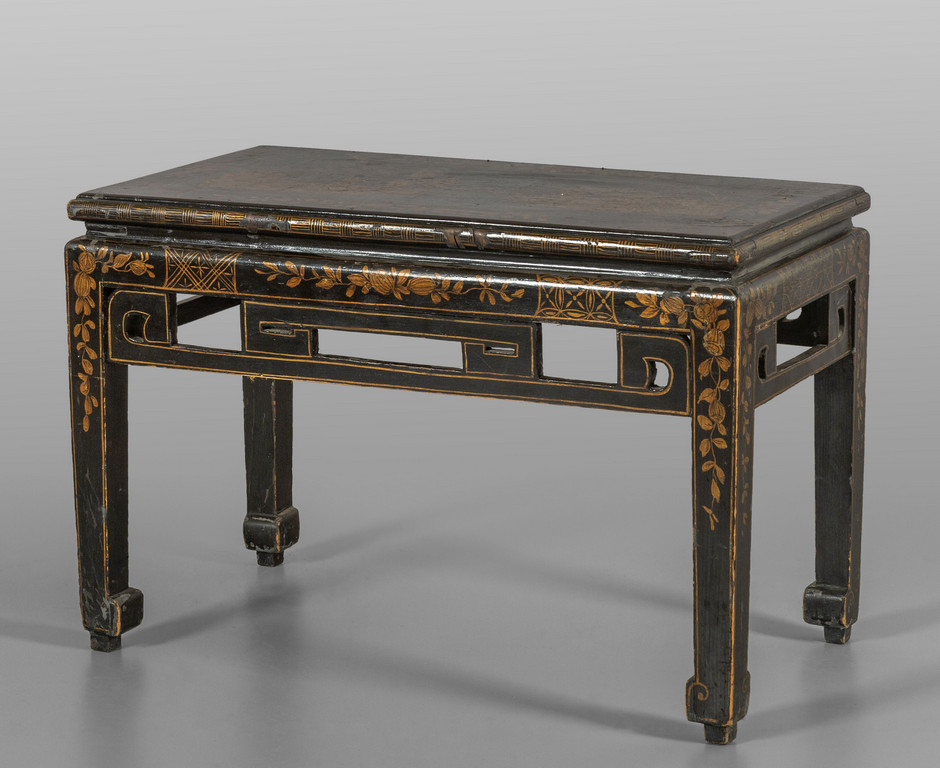 Tavolino da divano in legno laccato a cineseria in oro su fondo nero Cina sec.XIX