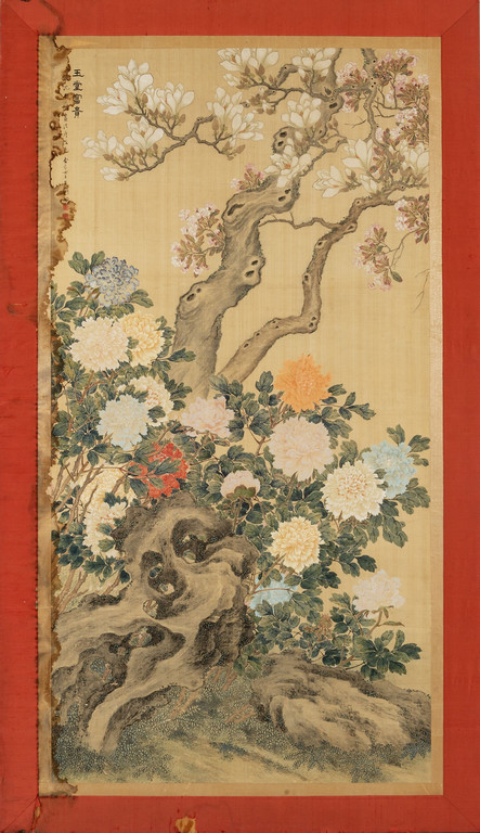'Paesaggio con albero in fiore' grande pannello Cina sec.XIX
