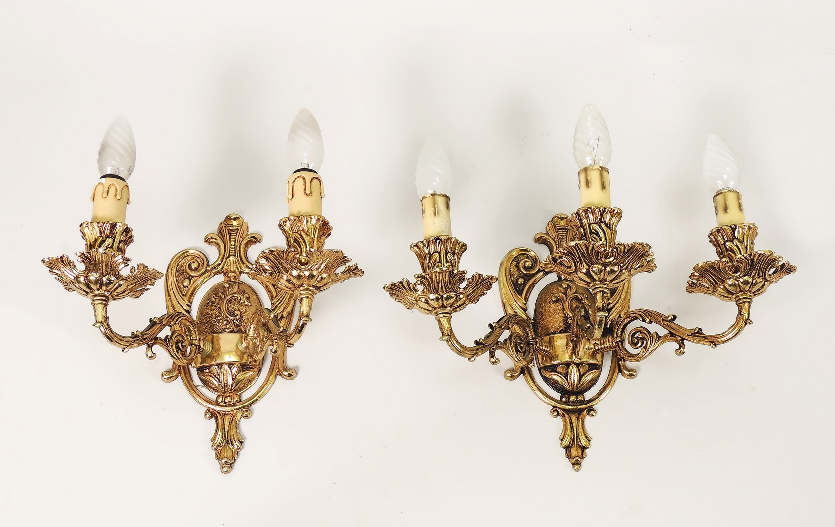Lot 538 | SERIE DI OTTO APPLIQUES IN METALLO DORATO - EIGHT GILDED METAL WALL LAMPS...