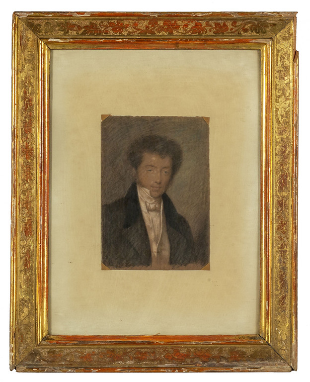 'Ritratto di gentiluomo con collarino bianco' pastello su carta sec.XIX