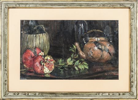 GIOVANNI CHERUBINI (1867-1960) Natura morta - Still Life olio su tela - oil on canvas, firmato, in cornice, difetti cm 28x45