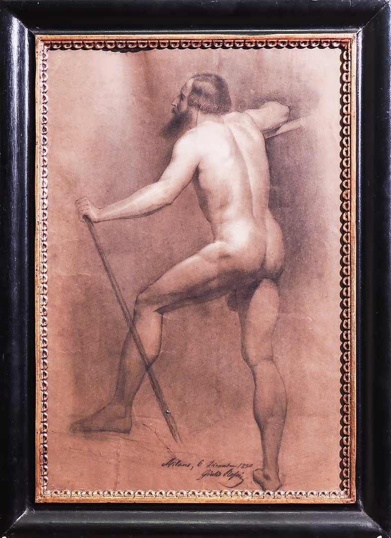NUDO MASCHILE - NUDE metà del XIX secolo - Mid 19th century matita e biacca su cartoncino - pencil and biacca on cardboard, firmato e datato 1850, in cornice cm 49x30