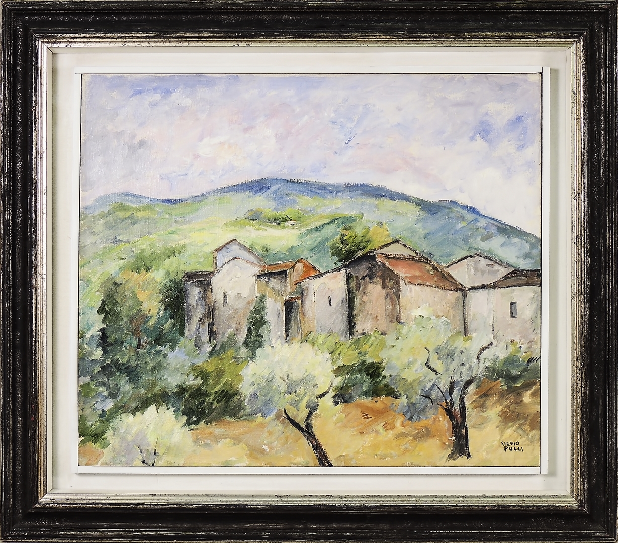 SILVIO PUCCI (1892-1961) Paesaggio - Landscape olio su tela - oil on canvas, firmato, in cornice cm 65x55