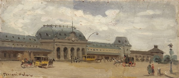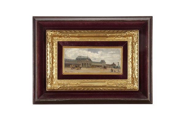 Arturo Ferrari "La vecchia Stazione Centrale" olio su carta applicata a cartone