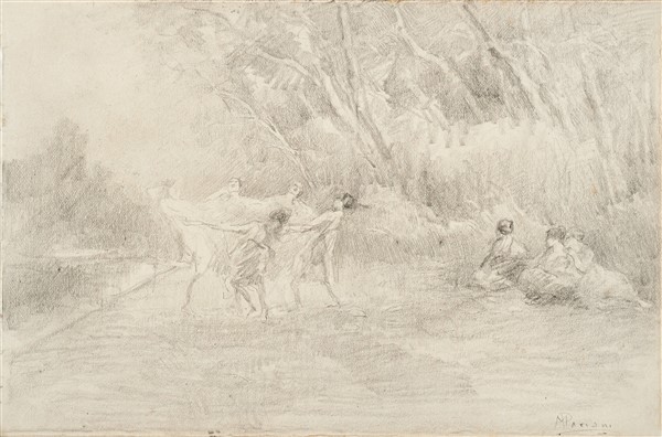 Pompeo Mariani "Ninfe nel bosco" carboncino su carta (cm 15x22,5) Firmato in ba
