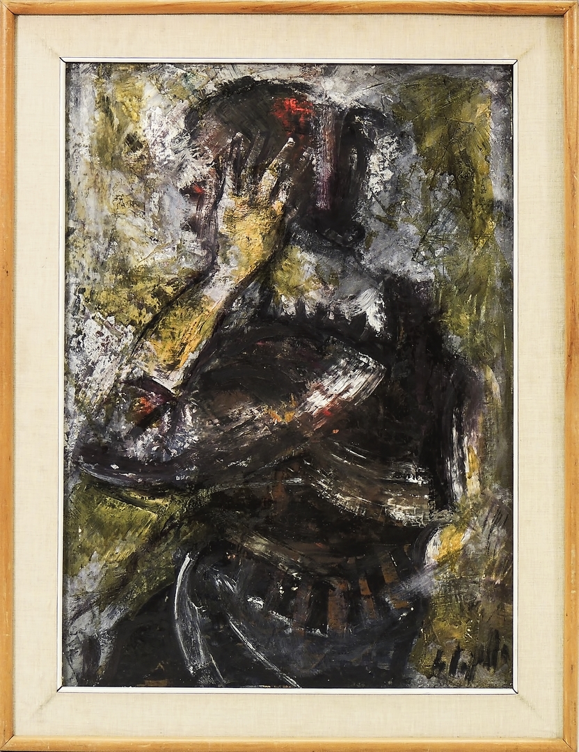 EMANUELE CAPPELLO Ritratto femminile - Female Portrait olio su cartone telato - oil on canvas board, firmato, in cornice cm 70x50