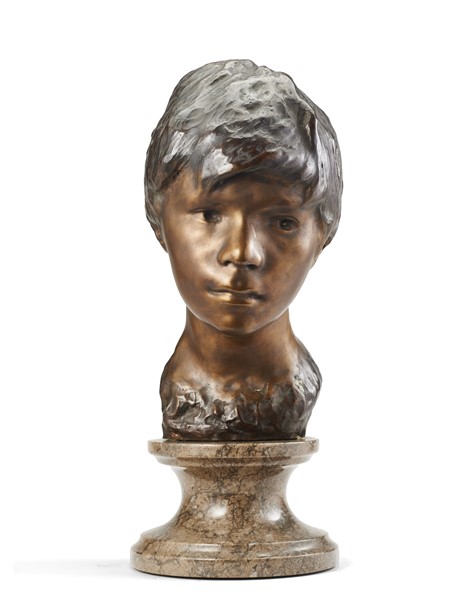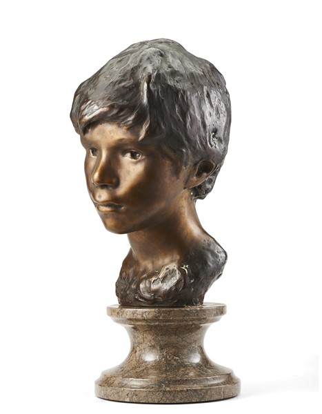 Vincenzo Gemito "Testa di fanciullo" scultura in bronzo (h cm 35) Poggiante su