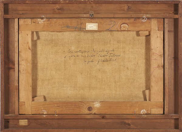Al retro: iscrizione per autentica del figlio Guido Tallone; sul telaio: cartiglio