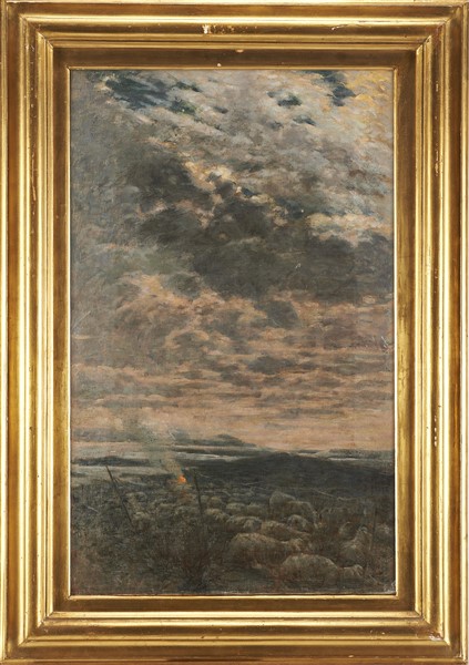 Niccolò Cannicci (Attribuito) "Gregge al pascolo" olio su tela (cm 68x42) Firm