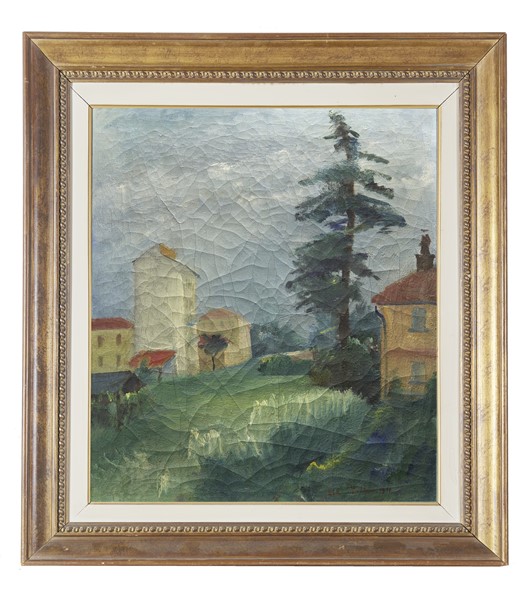 Umberto Lilloni "Case di periferia" 1930 olio su tela (cm 70x60) Firmato e datat