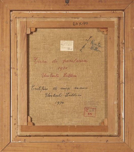 Al retro: titolato, datato e firmato; iscrizione per autentica del pittore in data 1974 e cartiglio.