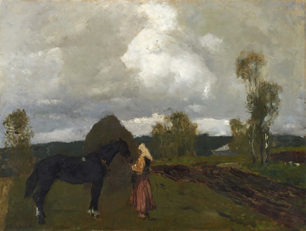 Alessio Issupoff "Lavoro nei campi" olio su tela (cm 75x100) Firmato in basso a