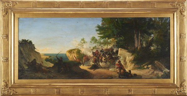 Michele Cammarano "Lo sbarco dei Mille" olio su tela (cm 49x120) Firma non coev