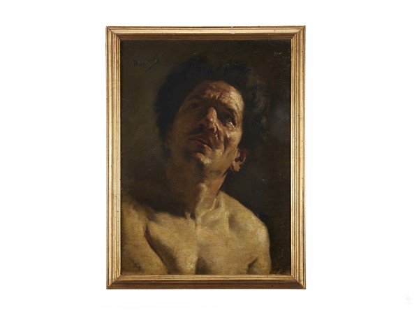 Domenico Morelli (Attribuito) "Testa virile" olio su tela (cm 50x36) Reca firm