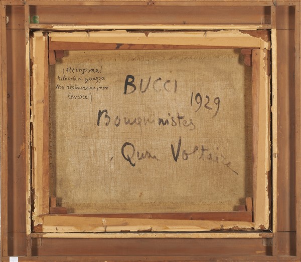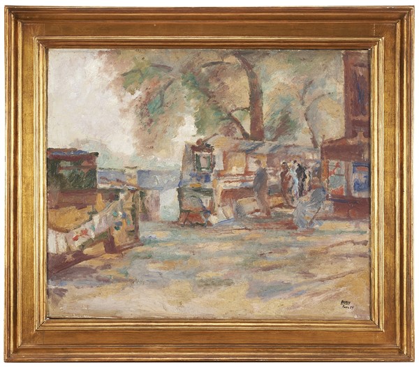 Anselmo Bucci "Bouquinistes Quai Voltaire" 1929 olio con ritocchi a tempera su t