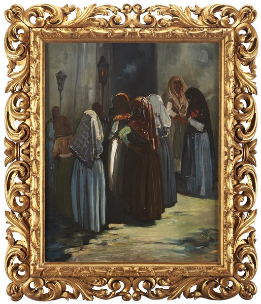 Giuseppe Biasi da Teulada "Processione" olio su tela (cm 70x56) Firmato in bass