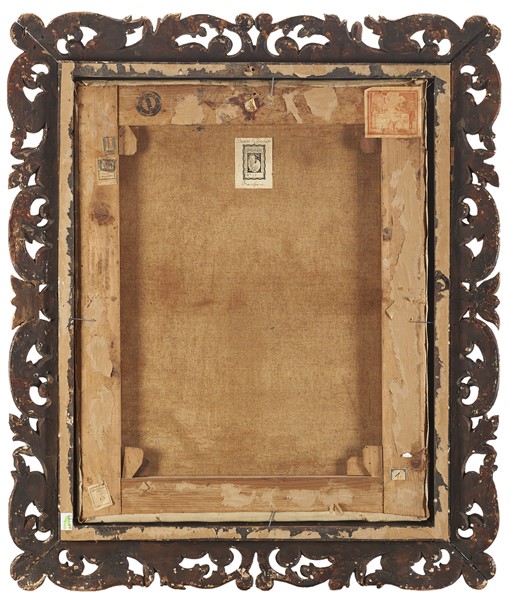 Al retro: cartiglio; Sul telaio: cartigli e timbri