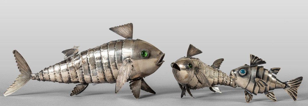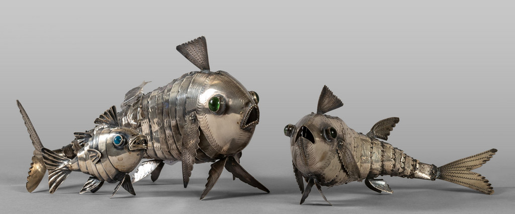 Previous Lot 1001 Next Aste Boetto - Via Mura dello Zerbino 10R, 16122 Genova ASTA DI ANTIQUARIATO Asta di Antiquariato Thursday 22 June 2023 hours 10:00 (UTC +01:00) OGGETTISTICA Tre pesci in argento metà sec.XIXil più grande l.cm.26