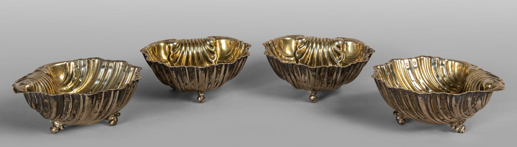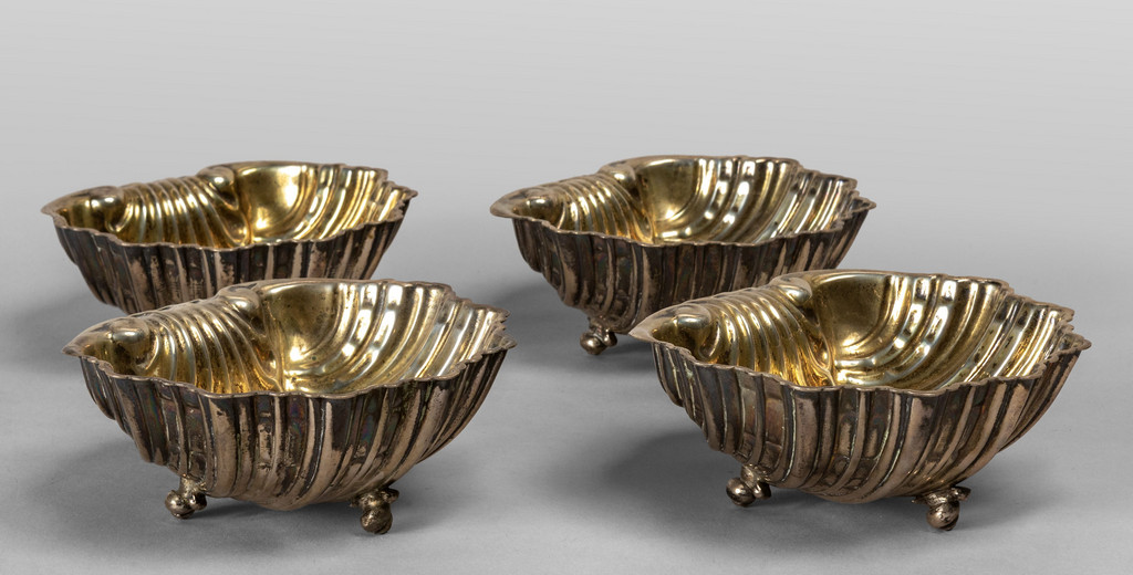 Previous Lot 1087 Next Aste Boetto - Via Mura dello Zerbino 10R, 16122 Genova ASTA DI ANTIQUARIATO Asta di Antiquariato Thursday 22 June 2023 hours 10:00 (UTC +01:00) OGGETTISTICA Quattro conchiglie in argento con interno in vermeillegr.1200