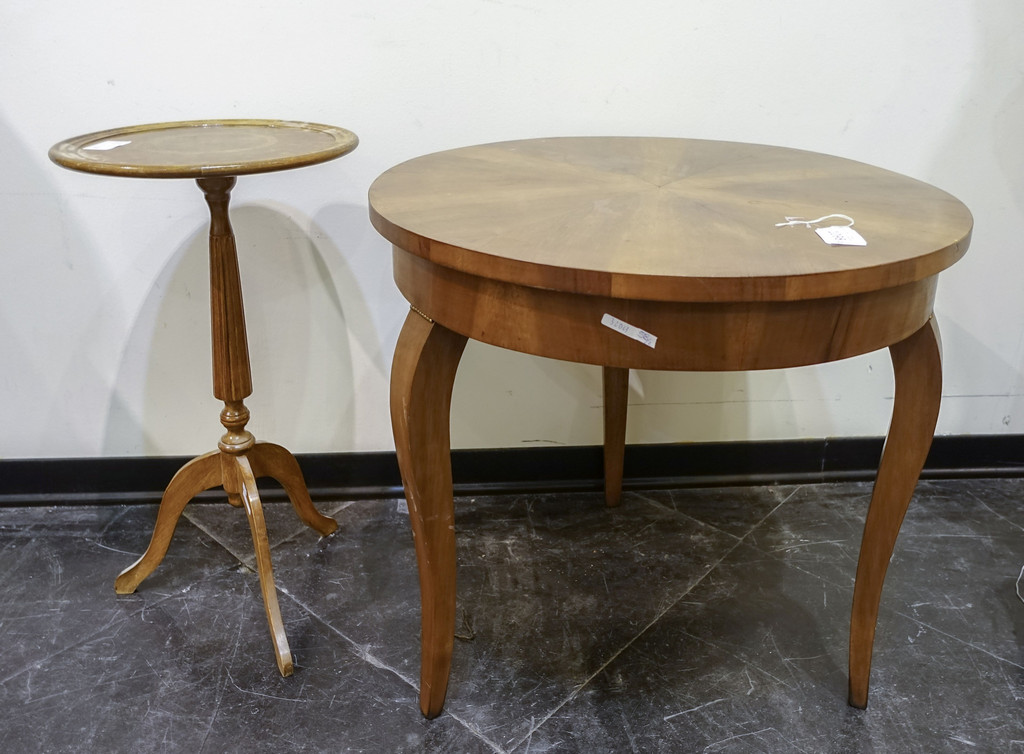 Tavolino rotondo in stile antico (diam.cm.65xh.58) e piccolo tavolino da appoggio