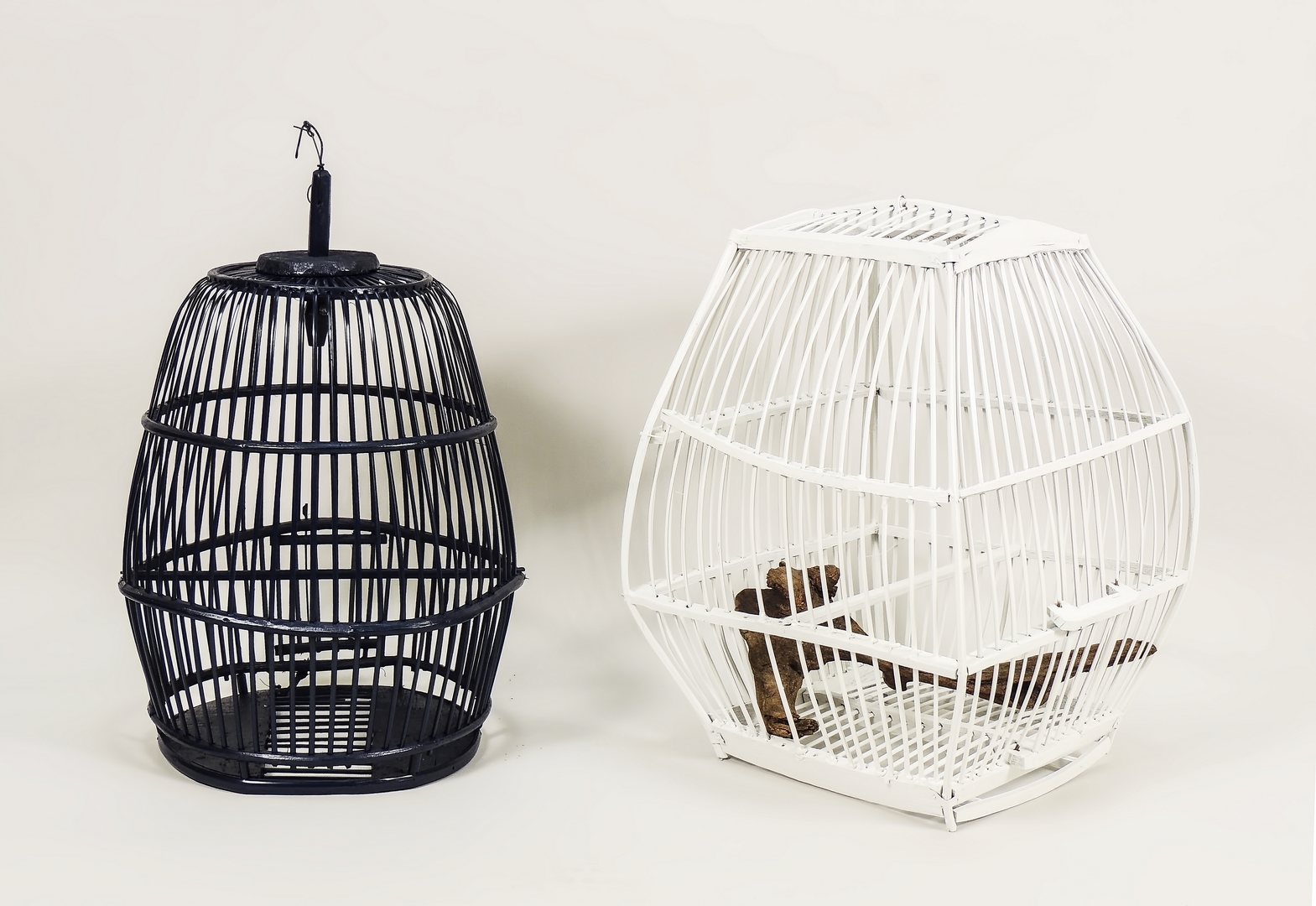 DUE VOLIERE - TWO BIRD CAGES una bianca ed una blu