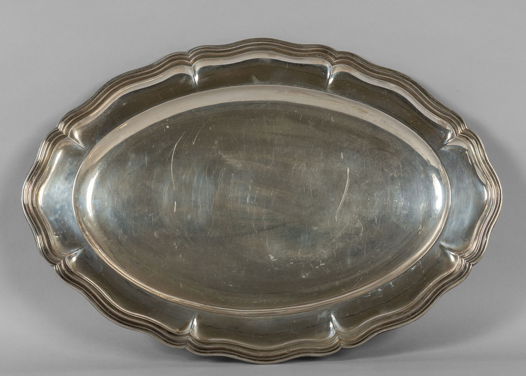 Previous Lot 1118 Next Aste Boetto - Via Mura dello Zerbino 10R, 16122 Genova ASTA DI ANTIQUARIATO Asta di Antiquariato Thursday 22 June 2023 hours 10:00 (UTC +01:00) OGGETTISTICA Piatto da portata ovale in argento in stile baroccocm.45x31 gr.1190